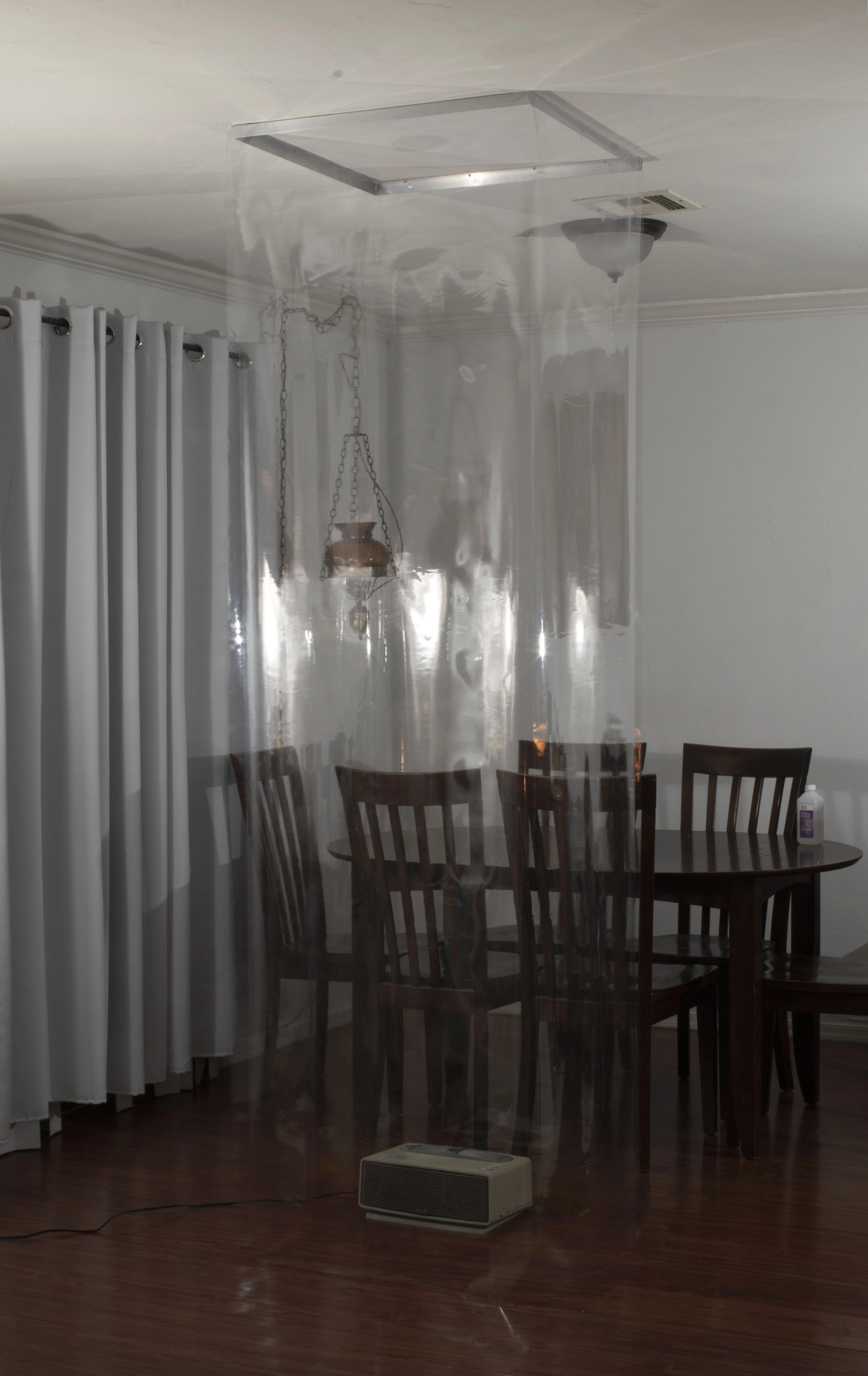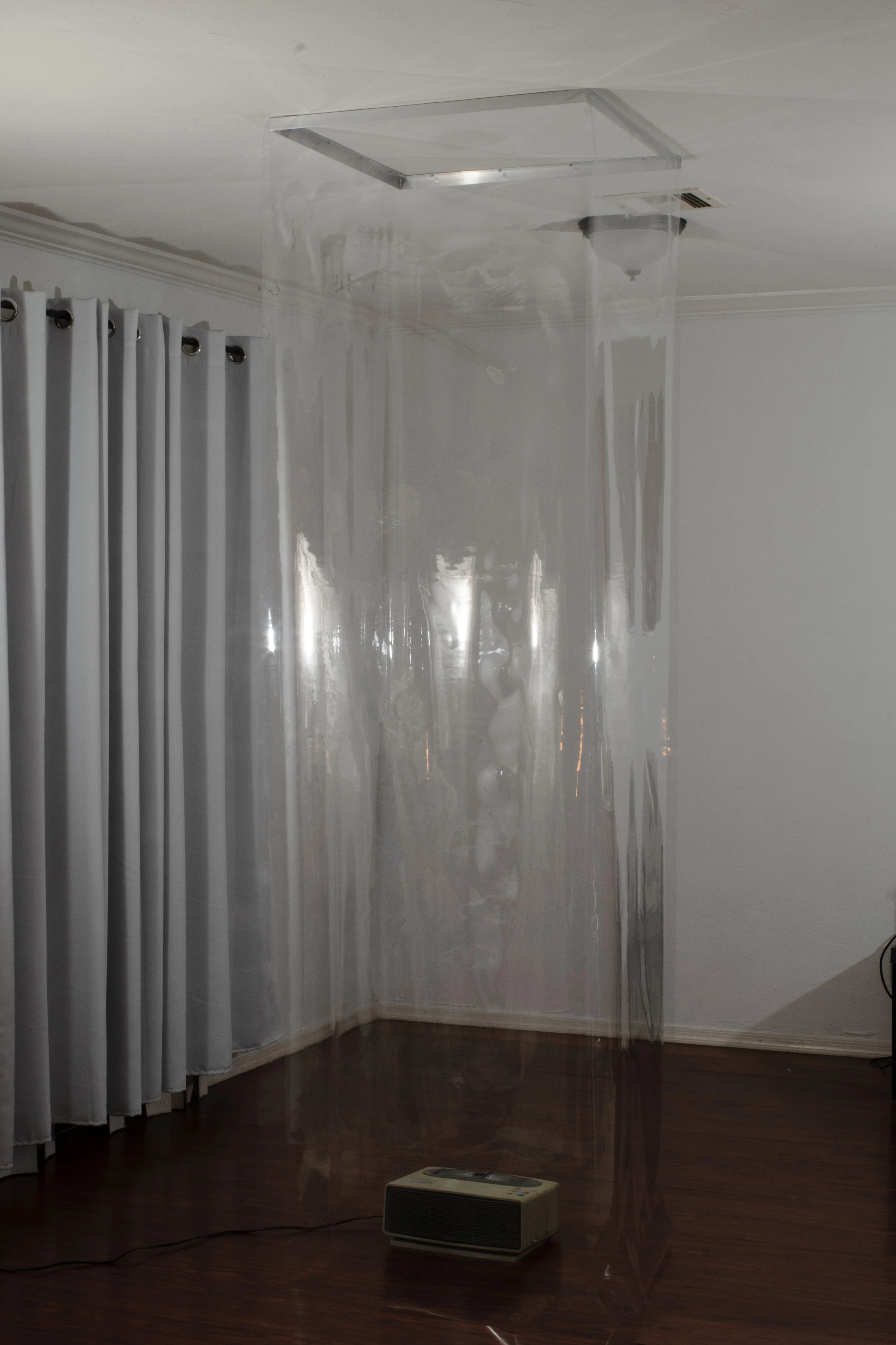 To enforce this, âClean Roomâ was created as a ceiling to floor column with only 4 square feet of area in which to stand. It appears as a column and indeed functions as a sort of support structure, albeit for emotional means. However, within this space lies a duality inherent to a cleanroom and isolation as a concept: this is a fragile state and requires much effort to maintain. One cannot stray from the standards required to maintain these environments. Its constricting. You become trapped. Making this piece was a way for me to confront my own paranoia about contracting COVID-19 as well as a means of coping with quarantine directives. Perhaps this piece can do the same for someone else.