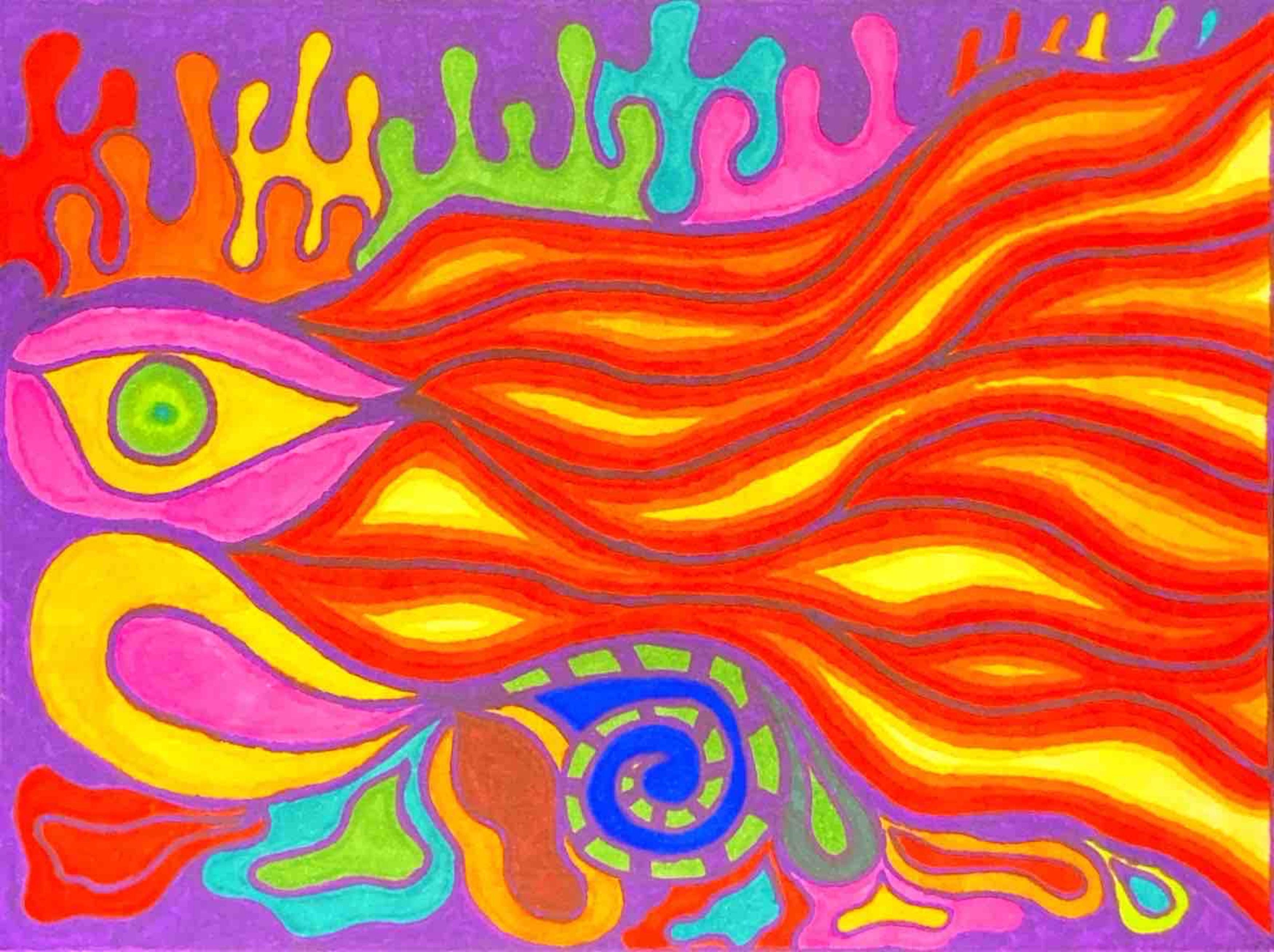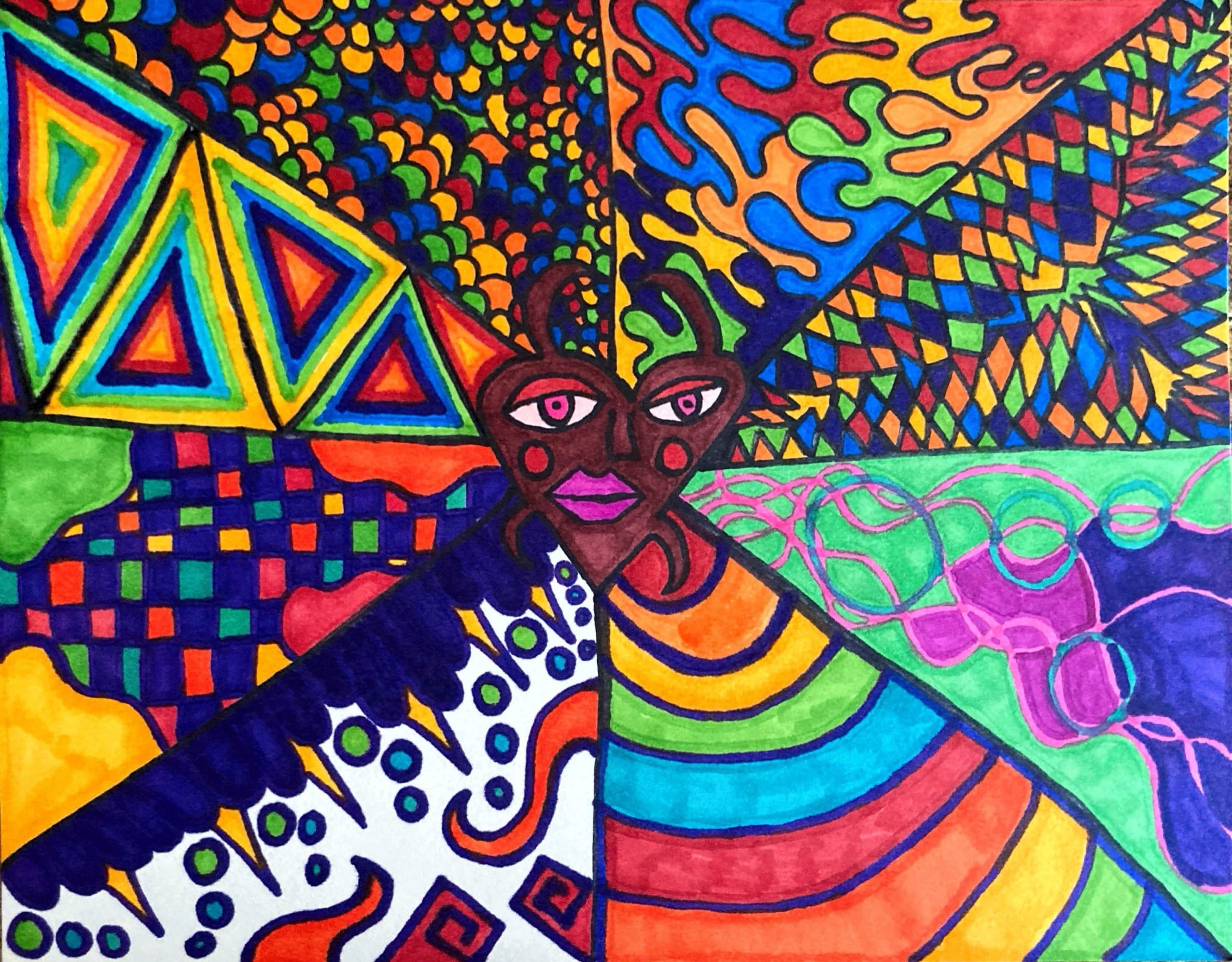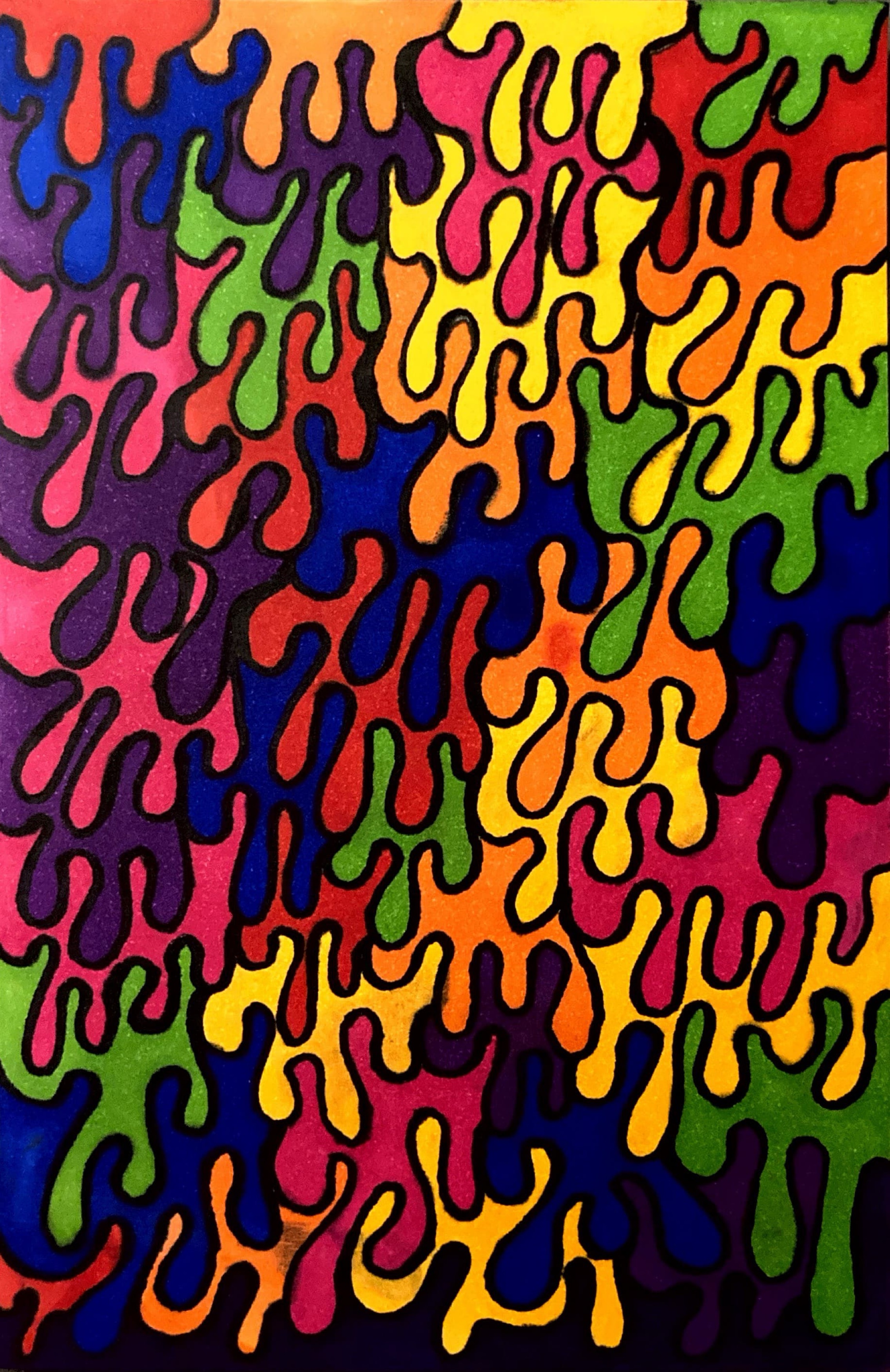 Bee Riot Elliott is a queer, nonbinary, disabled, Chicano artist who was born and raised in Tucson, Arizona. They started making psychedelic abstract art at the age of 15 inspired by its dad’s love of the band The Grateful Dead and other psychedelic imagery from the 60s and the 70s. In February 2024 (3 years after his dad’s passing) they decided to dedicate more time to its art and haven’t stopped creating since. Each of Bee’s pieces is a different rainbow hued psychedelic experience.